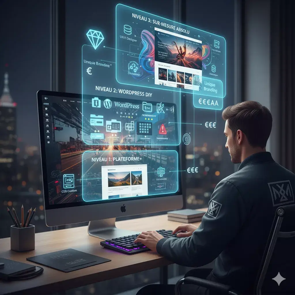 Chapeau : Dans l’article précédent, nous avons analysé les plateformes d’hébergement (Pixieset, Squarespace). Elles offrent une solution formidable : la simplicité, l’efficacité, un flux de travail optimisé. Mais elles ont un coût caché : l’homogénéité. Un œil averti reconnaît un template Squarespace ou une galerie Pixieset à des kilomètres. L’envie d’avoir un site « unique à son image » est une démarche non pas technique, mais de branding. C’est la volonté de passer du statut d’artisan efficace à celui d’artiste à la signature visuelle affirmée. Mais cette quête d’unicité est un chemin complexe, coûteux et semé d’embûches.